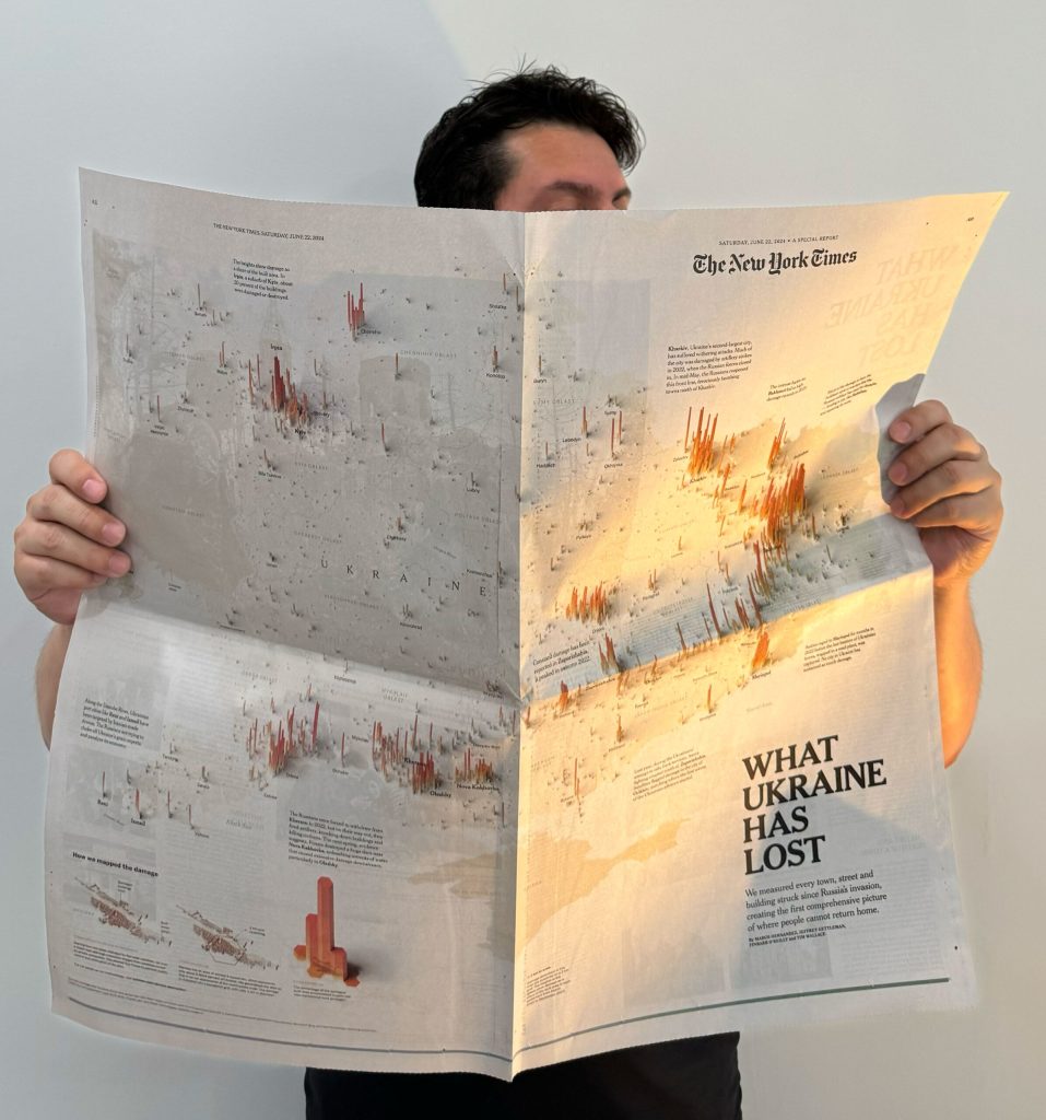 There are many stories with a deep meaning to me for different reasons. Maybe because the story was difficult to execute like the damage assessment of Ukraine I published with the Times in 2024. That same year, the illustrated scenes from the RNC and the DNC because of the format and execution, were fun stories to do. Drowning in Plastic with Reuters stayed with me for a long time, sometimes coming back because it was visually powerful but also spawned a change in the way or doing things for me. And so many more like that all for different reasons. Even the ones that did not went well, I have a collection of failures in my blog, I really appreciate the lessons learned from my #infofails.