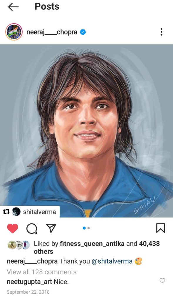 Illustration by Shital Verma, acknowledged and shared by Neeraj Chopra on his official Instagram (2018).